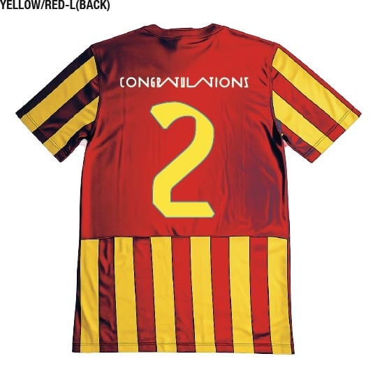 アルバムタイトル「2」を背番号に、コングラチュレーションズのロゴと刺繍ワッペン等を配置したデザイン。